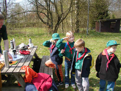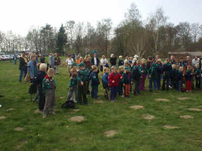 Bæverne, ulvene og juniorspejderne var mødt op på Frydenborg til årets Sct. Georgsløb d. 21. april 2002.