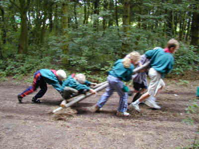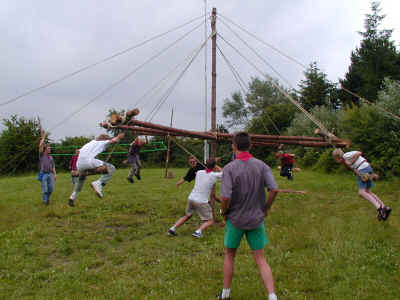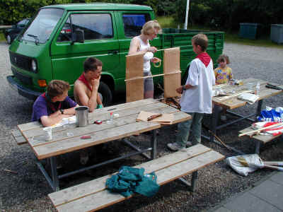 Blandt juniorspejderne foregår der også en masse. Her er de lige begyndt på noget storpionering....