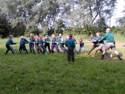 Her er det tovtrækning. Jeg kan godt røbe, at ulvene vandt.