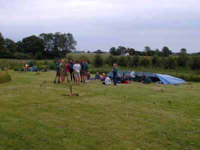 Vel ankommen til "Farmen". Nu skal lejren opbygges og her gælder det juniorspejdernes og spejdernes telte. Spejderpatruljen er yderst til højre.