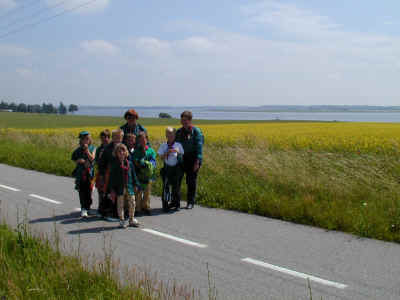 Søndag morgen. Traditionen tro tager vi til gudstjeneste i den nærmeste kirke. Her er vi på vej med fanerne forrest.