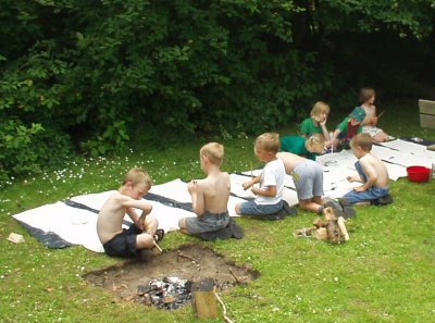 Første aften hvor der skal laves aftensmad på bål hos troppen.