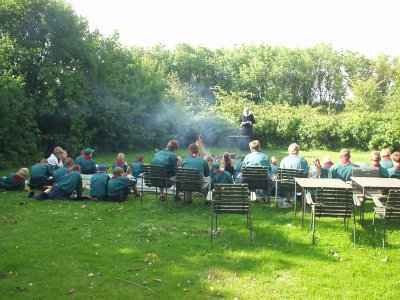 Torsdag morgen havde vi andagt med en præst fra St. Heddinge. Han fortalte bl.a. spejderne om sine vandreture rundt i hele verden.